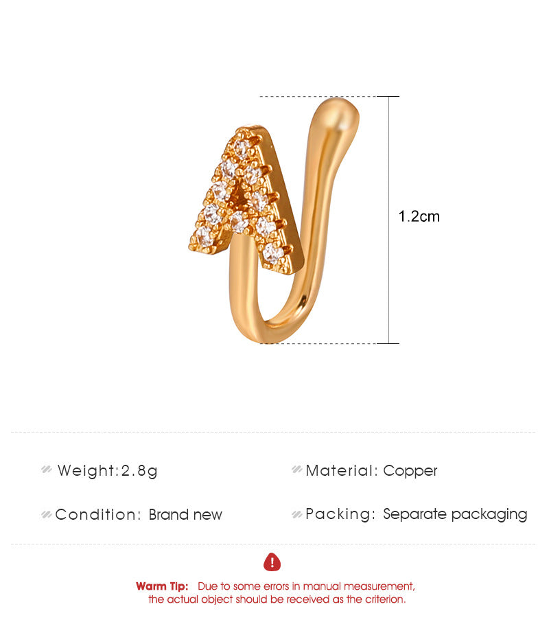 Copper Inlaid Zircon Letter U-shaped Nose Clip Ring Piercing Jewelry